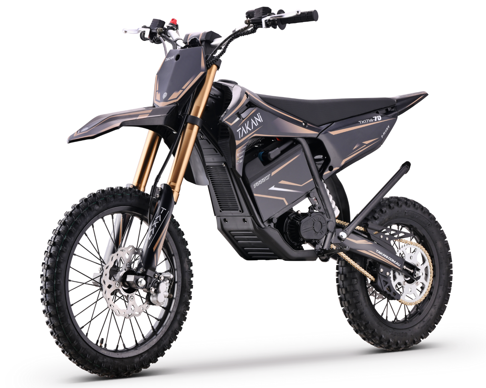 Introducing the all-new TAKANI TK1714-70. This is our latest generation electric dirt bike, engineered for next-level performance with aggressive, modern styling.