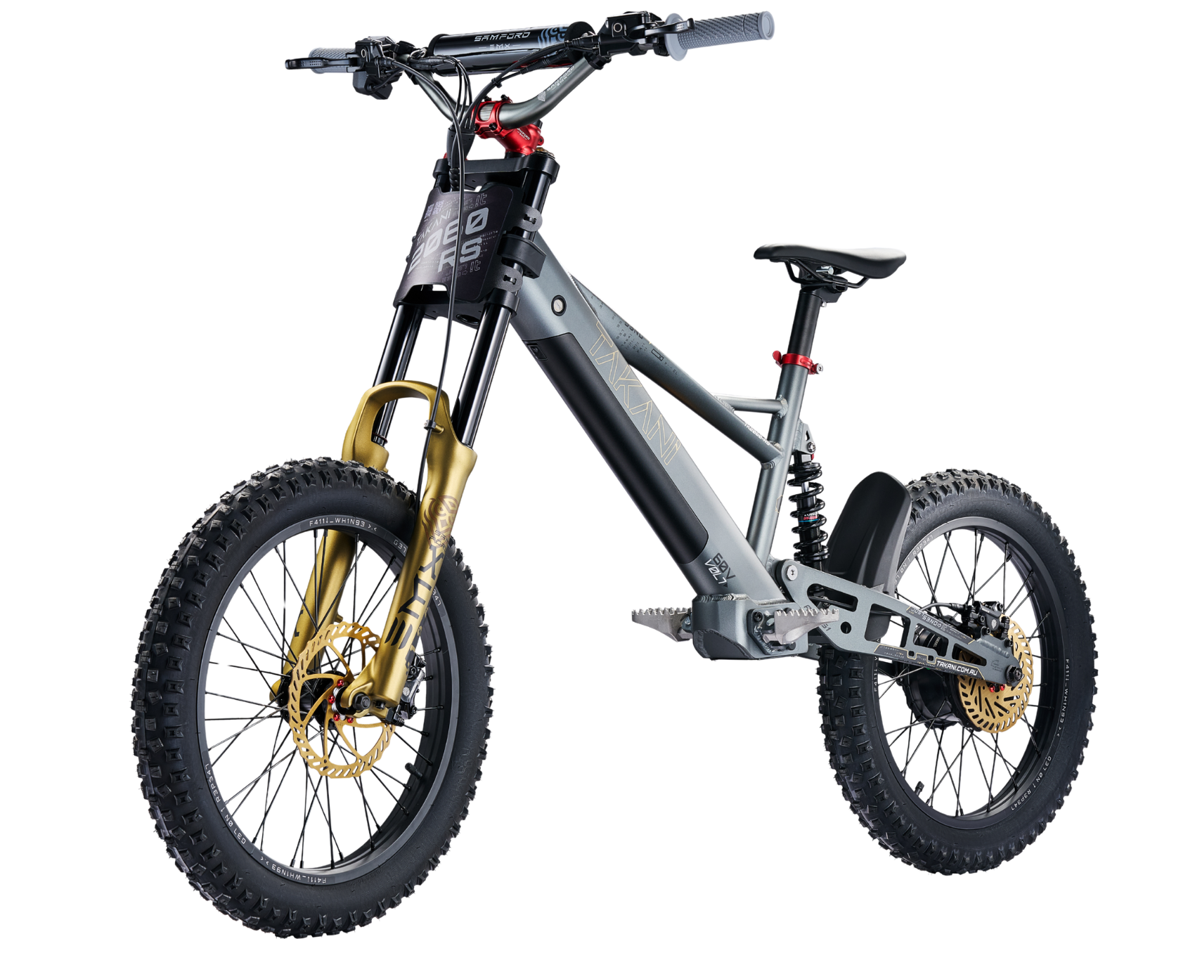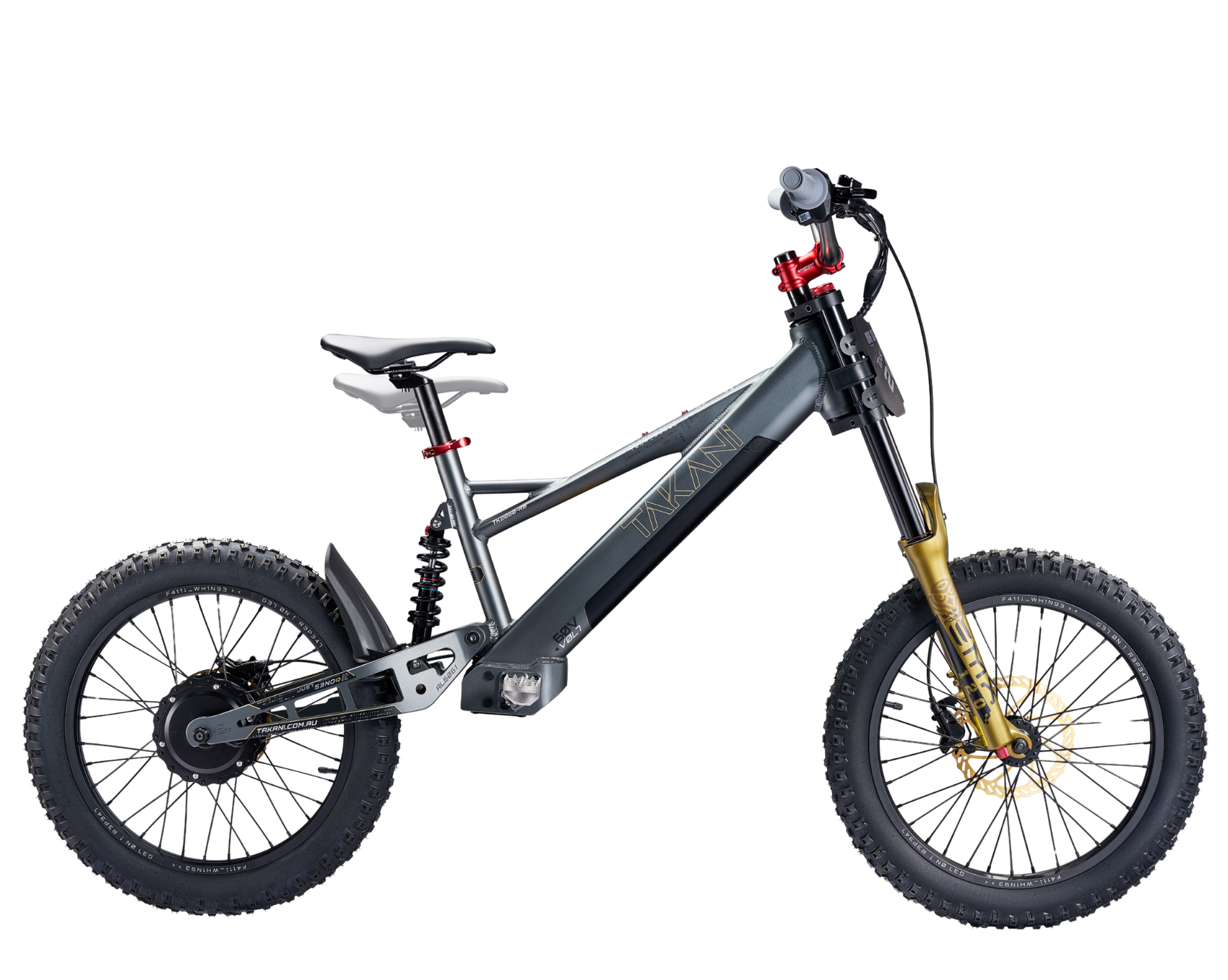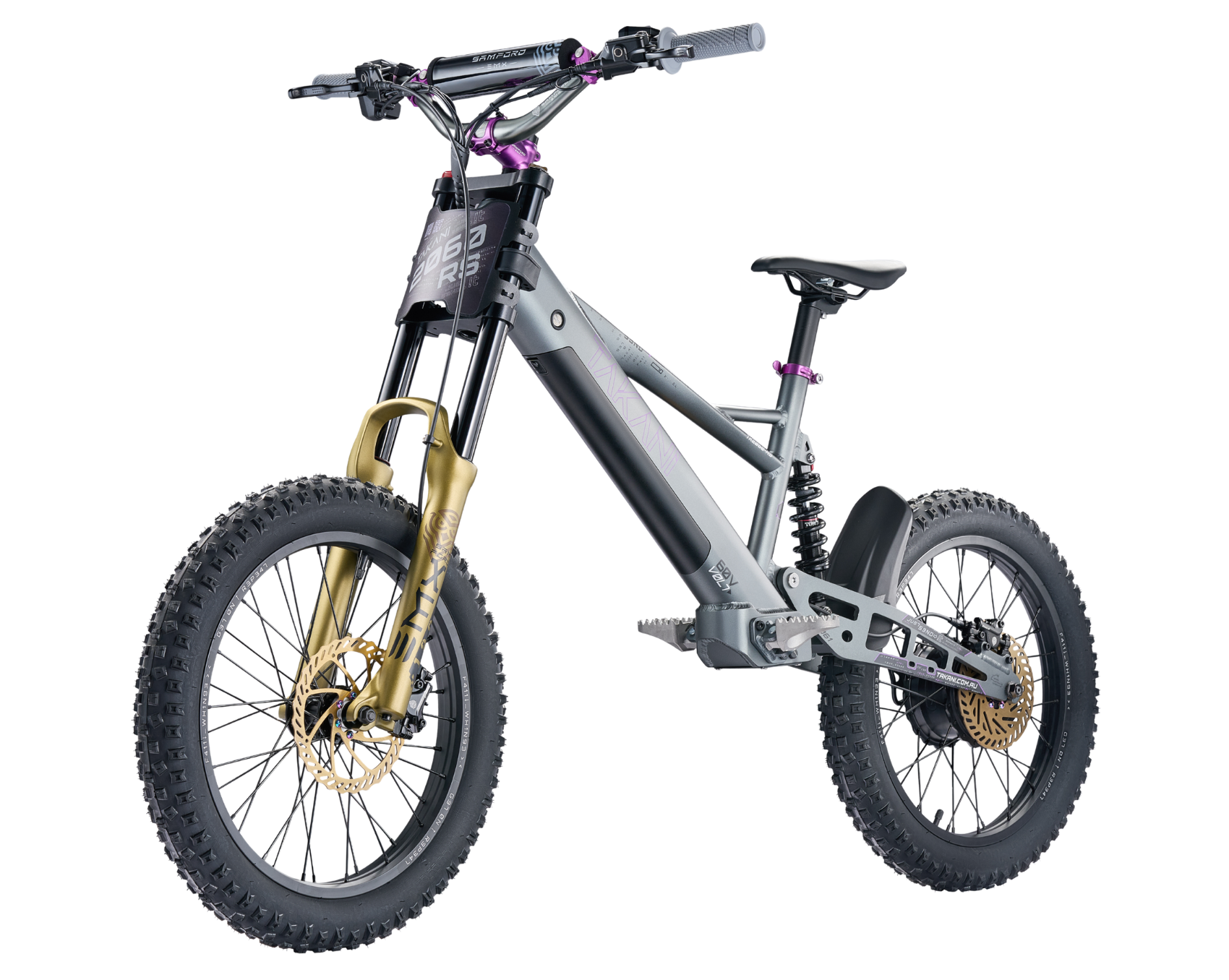 Designed for kids kids aged 10-14, body heights >150cm (and all parents that want to go for a sneaky spin) the TK2060-RS blends a full suspension mountain-bike, BMX and E-MX.