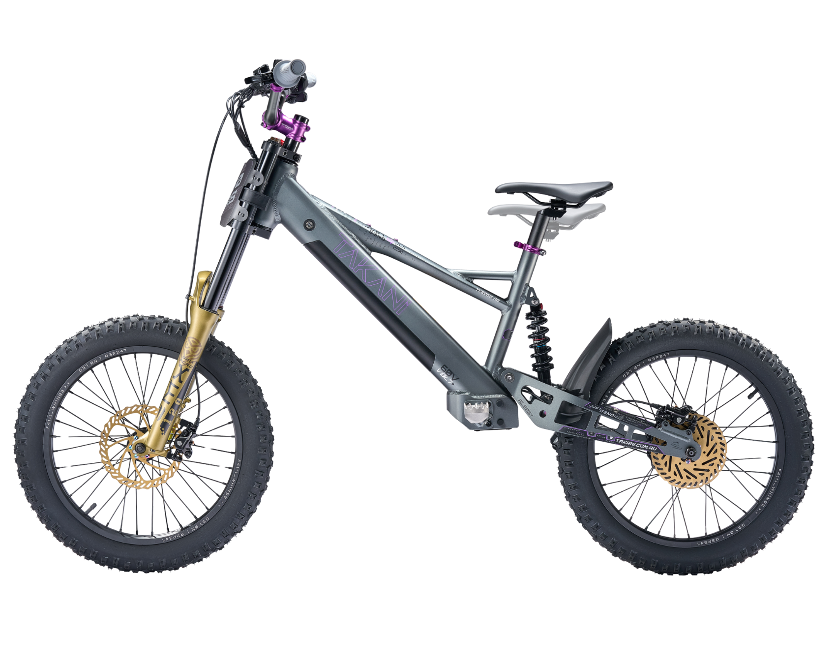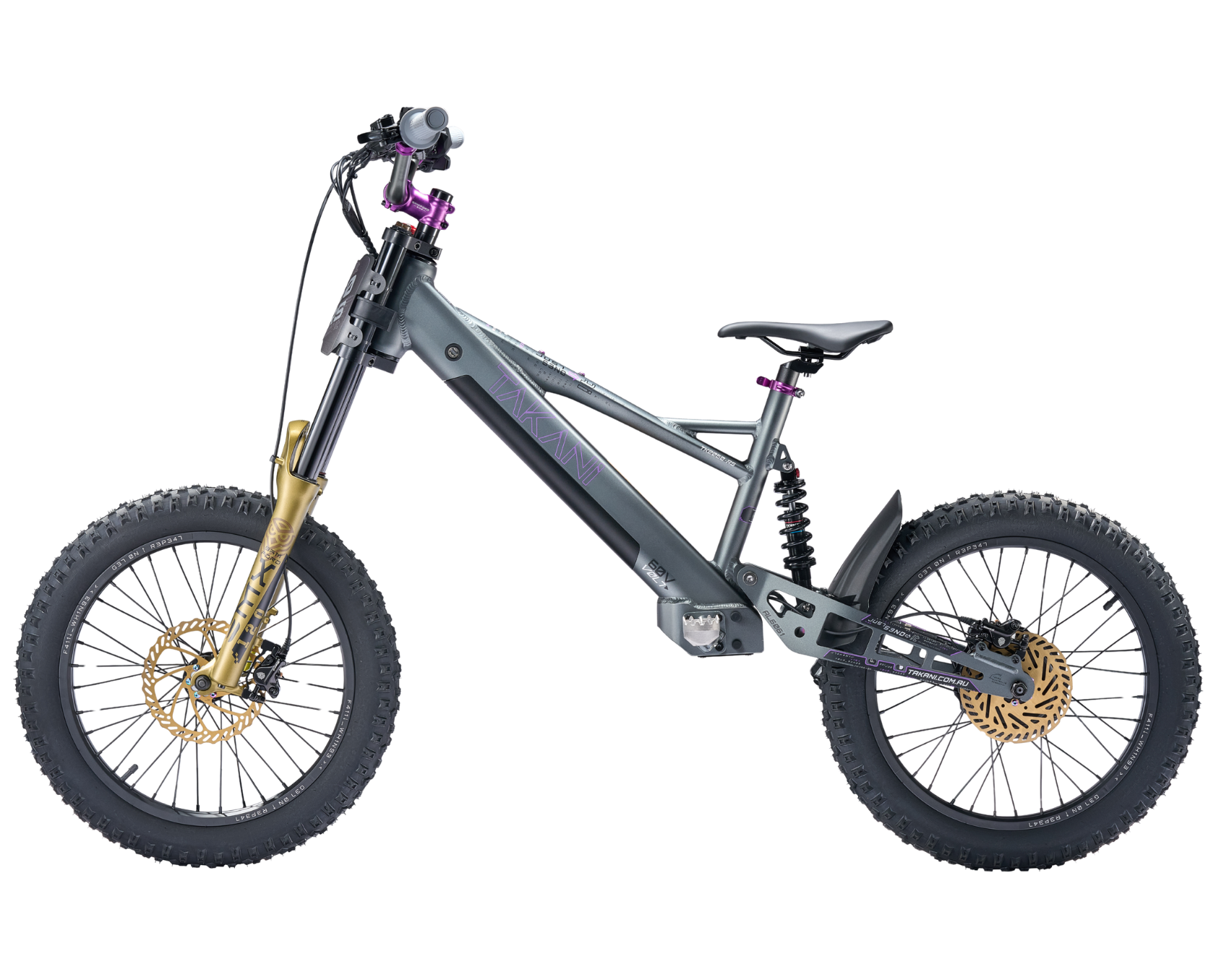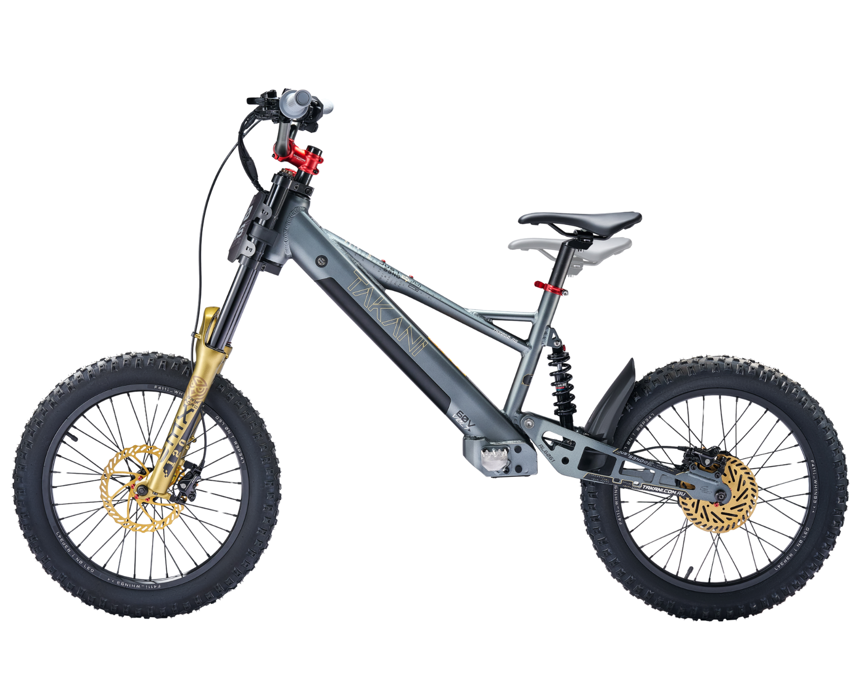 Designed for kids kids aged 10-14, body heights >150cm (and all parents that want to go for a sneaky spin) the TK2060-RS blends a full suspension mountain-bike, BMX and E-MX.